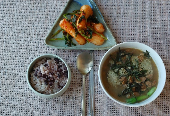 점심은 팥밥에 청국장을 끓였다.