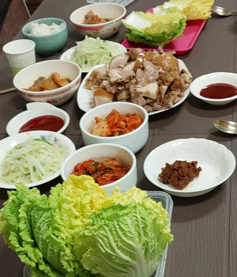 수육에 배추쌈으로 먹다.