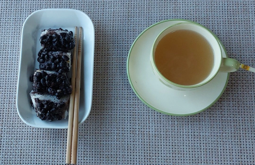 아침은 어제 만든 무 시루떡과 와송차로.