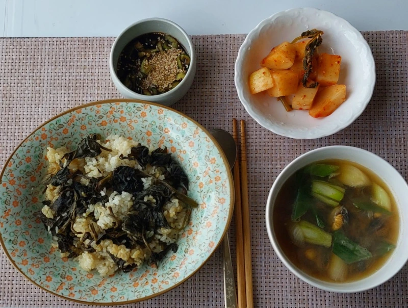 콩죽과 취나물밥, 배말된장국