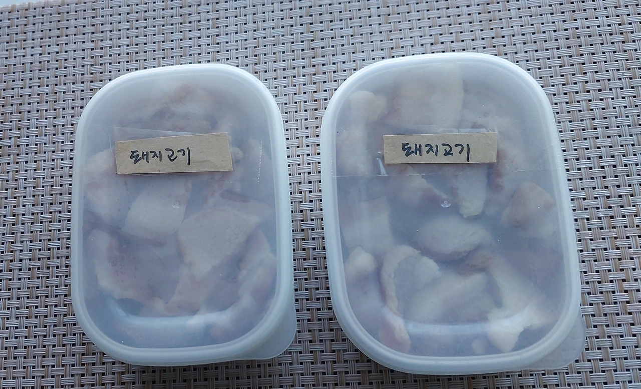 김장할 때 수육용으로 산 돼지고기가 남아있어서 뜨거운 물에 데쳐 기름기를 제거하고 건조했다. 햇볕도 바람도 좋으니 밖에서 말리면 좋으련만 고양이들 등쌀에 어쩔 수 없이 오븐에 건조기능으로.