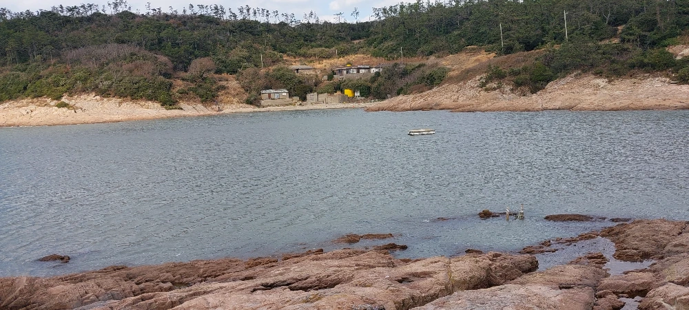여기 어디쯤 통발 두 개를 넣어놓고 매일 들락거리고 있다.