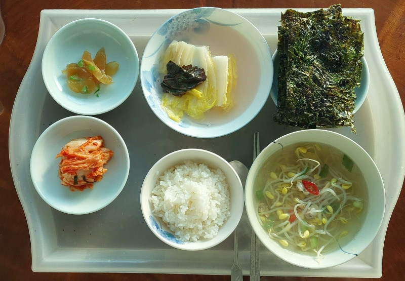 감기 기운이 있다고 콩나물국을 원해서 원하는 대로.... 멸치육수에 냉동실에 있는 바지락 조금 넣고 소금 간. 그리고 울외장아찌.