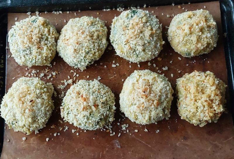 삶은 고구마 으깨서 시금치, 말린 돼지고기, 당면 넣고 빵가루가 부족해서 누룽지가루로 대체했는데 괜찮았음.