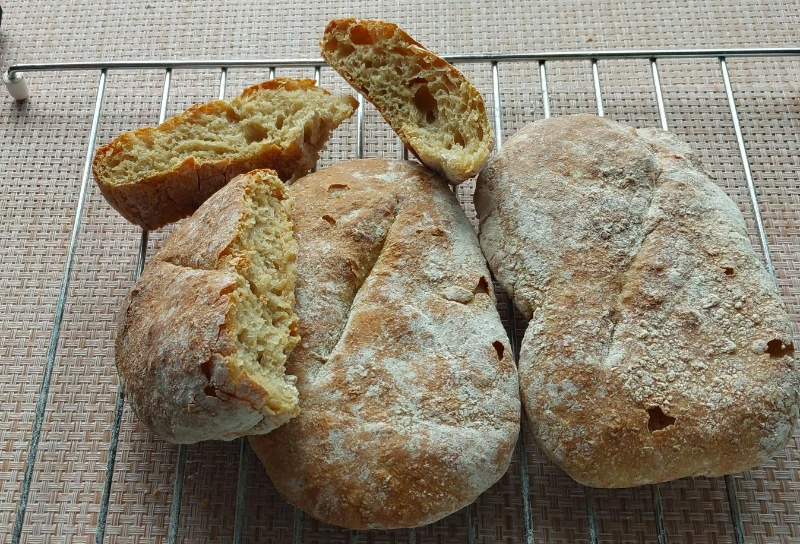 점심은 어제 냉장고에 넣어둔 반죽으로 치아바타 굽고 슬금슬금 맛보다 보니 어느새 한 끼 해결. 빵을 그렇게 좋아하는 건 아닌데 금방 구운 건 유혹을 뿌리치기 어렵다.