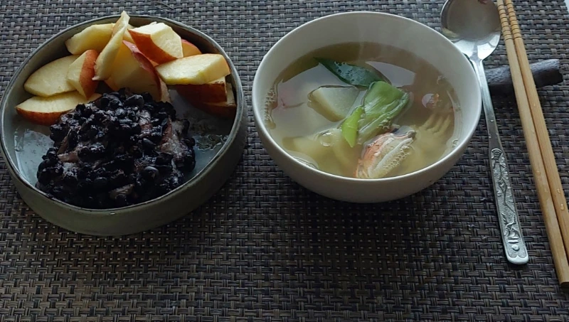 아침은 예전 만들어본 무 넣은 팥시루떡, 냉동실에 있던 걸 데웠다. 그리고 통발에 들어온 게, 손질해서 무 넣고 끓인 맑은 국. 통발은 재미 삼아 던져보는데 가끔 낙지나 문어가 들어오기도 한다. 아주 가끔씩.