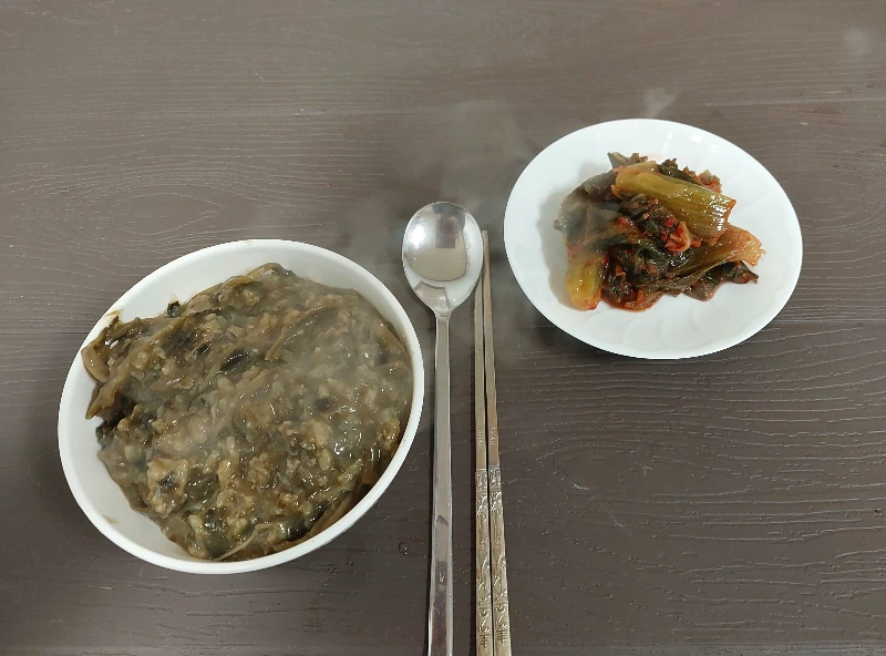 점심은 회관에서 어제 먹다 남은 돈두죽으로.