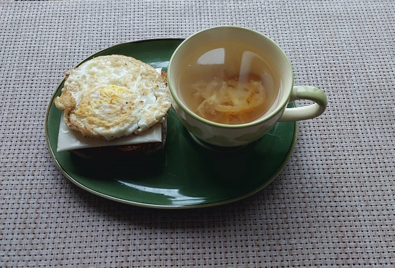 아침은 식빵과 치즈, 계란 그리고 유자차.