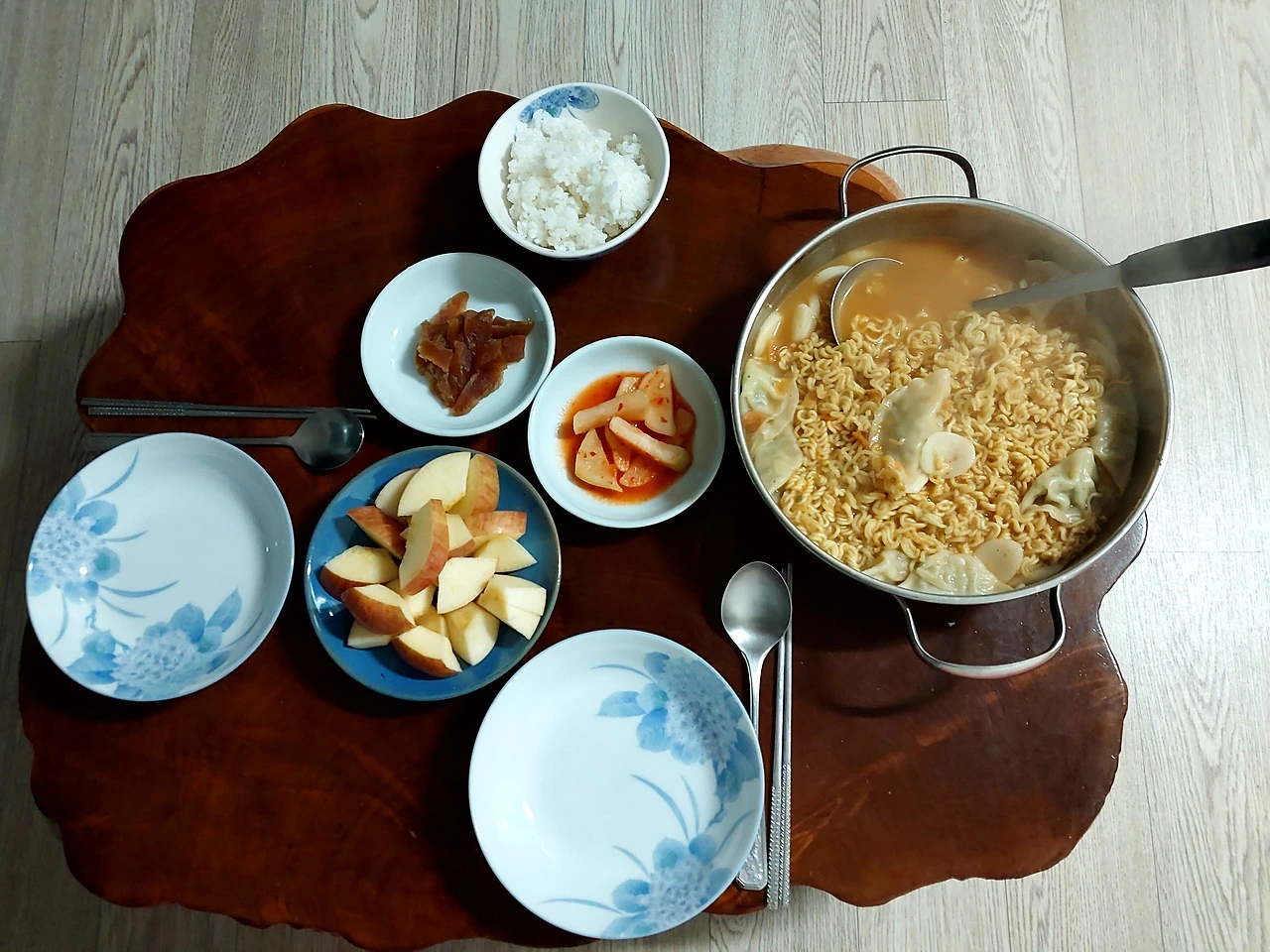 저녁은 떡국과 만두 넣은 라면으로...