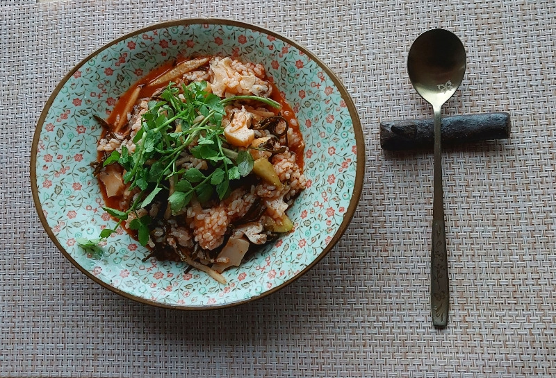 점심은 톳나물에 밥 비벼먹다.