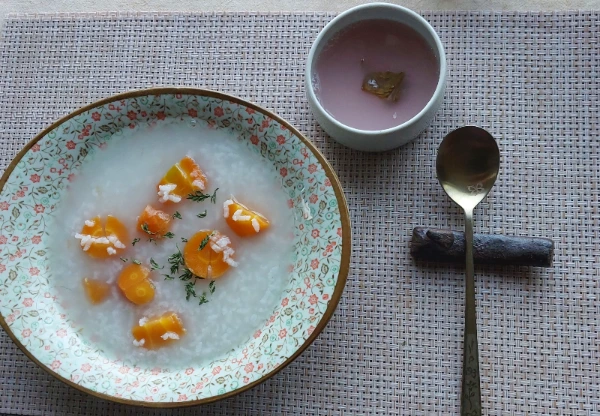 점심은 쌀과 당근을 함께 넣어 푹 끓였다. 아무 간도 하지 않고 그냥 그대로.