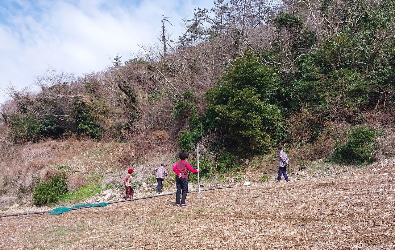 오늘은 이 조용한 섬마을이 좀 시끄러웠다. 멧돼지가 덫에 걸렸기 때문. 점심 먹고 다 나가서 구경하면서 우리 고구마도 먹고 콩도 먹고 농사도 못 짓게 하는 넘이라고들... 한 마디씩. 처리는 옆 마을 섬에서 장정들이 와서 해 주심. 섬마다들 맷돼지 때문에 피해가 많은데 속수무책이다.