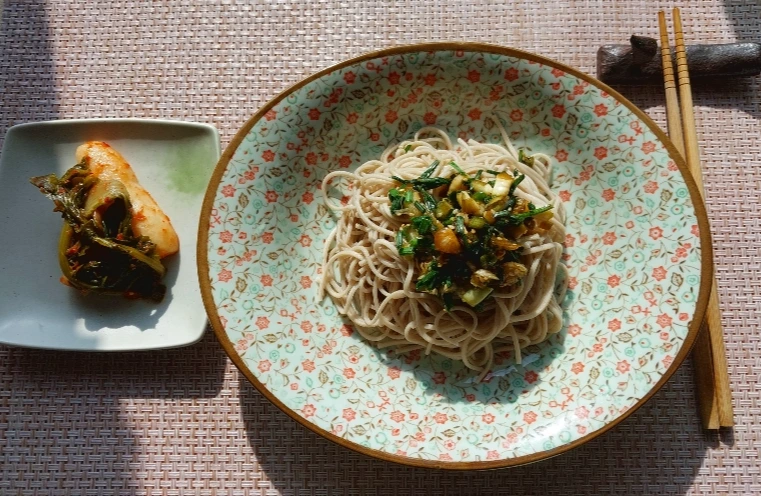 점심은 메밀국수 삶아서 달래장에 비벼 먹다.