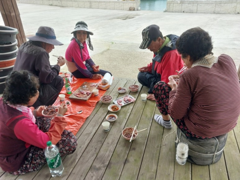 어제는 오랜만에 정자에 모여 가자미회를 먹었다.