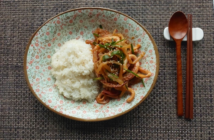 재료는 삶은 머윗대와 데친 오징어와 고추장과 매실액과 오징어와 부추를 넣으셨는데... 식초도 들어갔을까? 맛이 약간 새콤하긴 한데... 맛있다. 내가 좋아하는 맛이다.