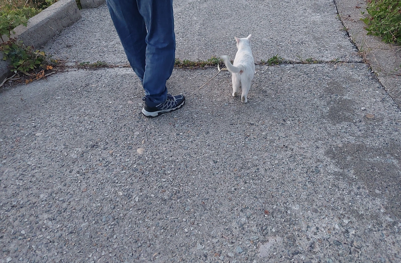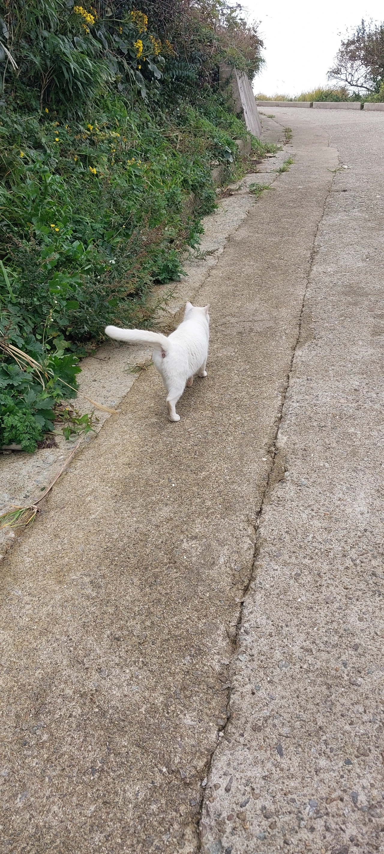 그래서 생각만 잠깐 하다 접었는데 어느 날, 산책길에 고양이 울음소리가 나서 이리저리 둘러보니 배밑창에서 우리 섬 고양이가 아닌 고양이가 울고 있었다.