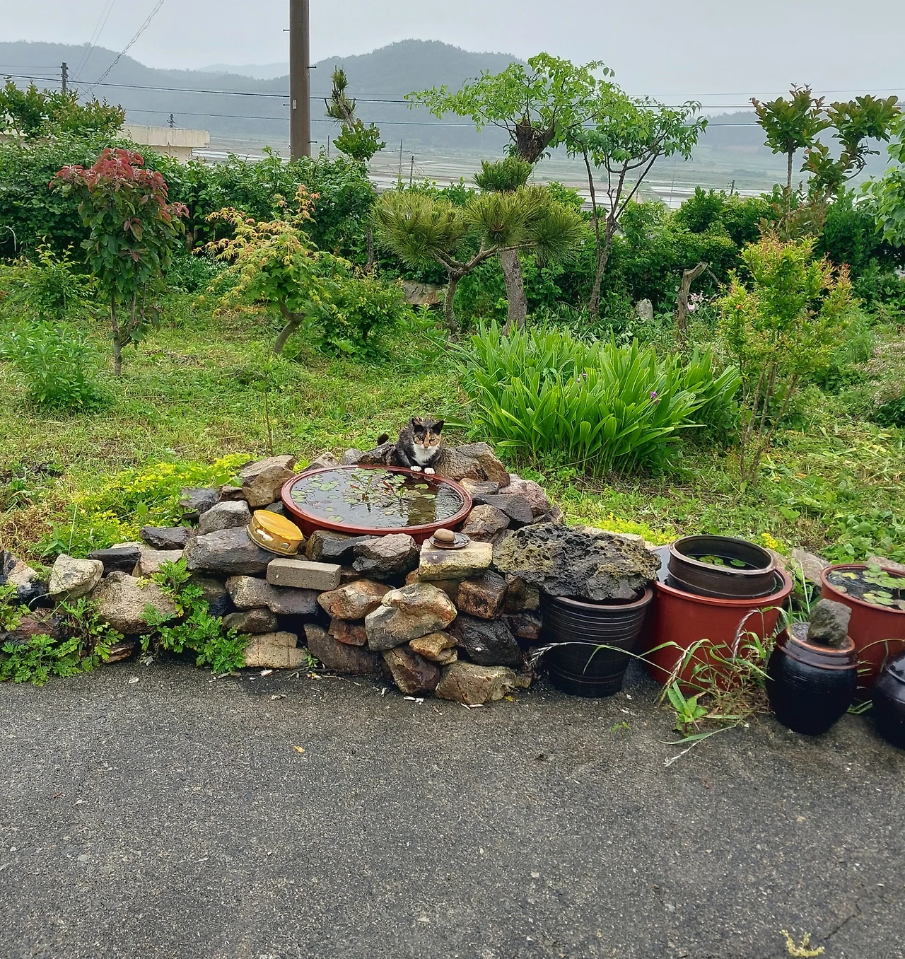 비가 오는데도 꿋꿋이 저렇게 앉아있었다.