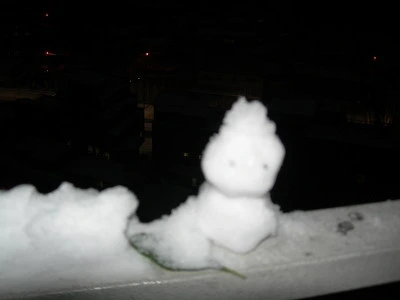 창틀에 쌓인 눈으로 아주 자그마한 눈사람을 만들었다.