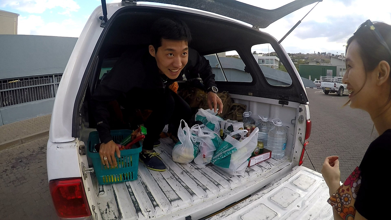 비자 심사 때문에 5시간 정도 지나서야 예지가 도착했다. 힘들었을 텐데 언제나처럼 발랄하게 등장했다. 그러곤 나 때문에 다 늦어졌다고 미안해했다. 그 마음이 이해는 갔지만 정말 괜찮았다. 오히려 친구가 마음 불편해하는 게 맘에 걸렸다. 우분투 3단 합체, 이제야 진짜 완전체가 되었다. 드디어 만났다. 예지가 오고 나니까 일시정지가 풀리고 다시 여행이 진행됐다. 늦었지만 차근차근, 빈트후크 시내로 장을 보러 갔다.