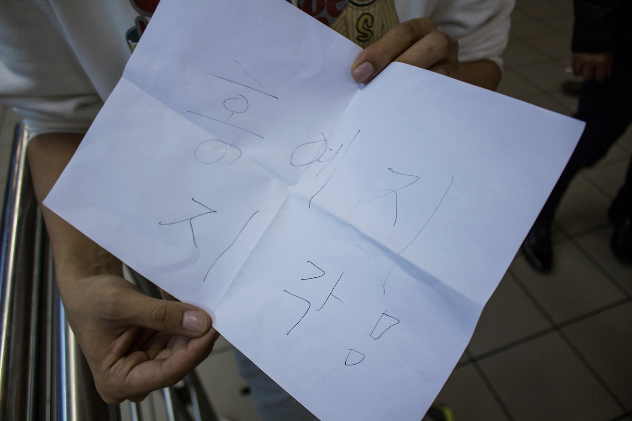 예지를 기다리면서 우리는 허기도 채우고 남아공에서 사용한 공동경비도 정산했다. 그리고 그 흔하디 흔한 몰카를 준비하기도 했다. '홍예지 지각!'이라는 팻말도 만들었다.