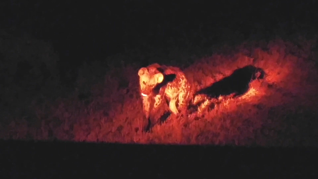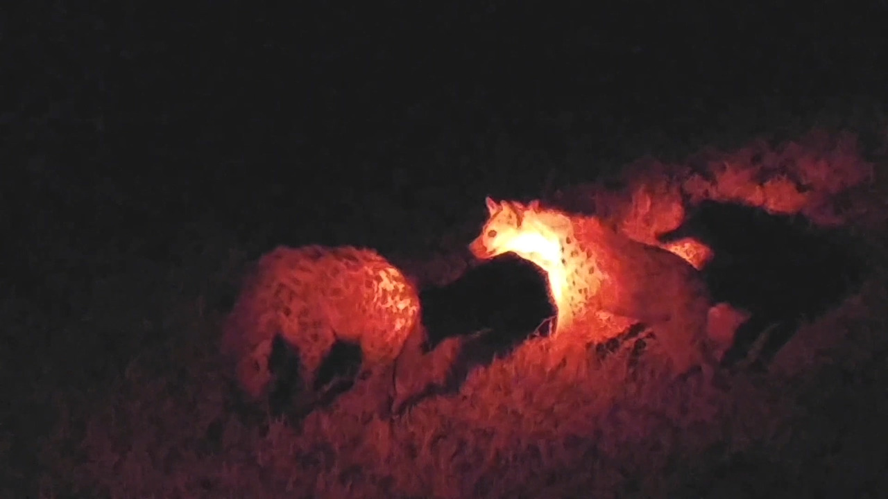 우리는 지붕도 없는 철제 지프차에 신나게 올라탔다. 가이드는 각국 관광객을 다 태운 뒤 담요를 나눠주고는 곧 차를 출발시켰다. 체감상 1분 여가 지났을까. 야영객들이 머무는 캠핑지와 동물 고유 영역 사이를 나누던 큰 문이 드러났다. 사실 동물들은 인간들이 정해둔 구역과 정말 가까이 있었던 것이다. 이 문부터는 가이드가 적외선 등으로 어둠을 비추며 동물들을 찾았다. 거의 시작하자마자 야간에 활동하는 동물들이 나타났다.
