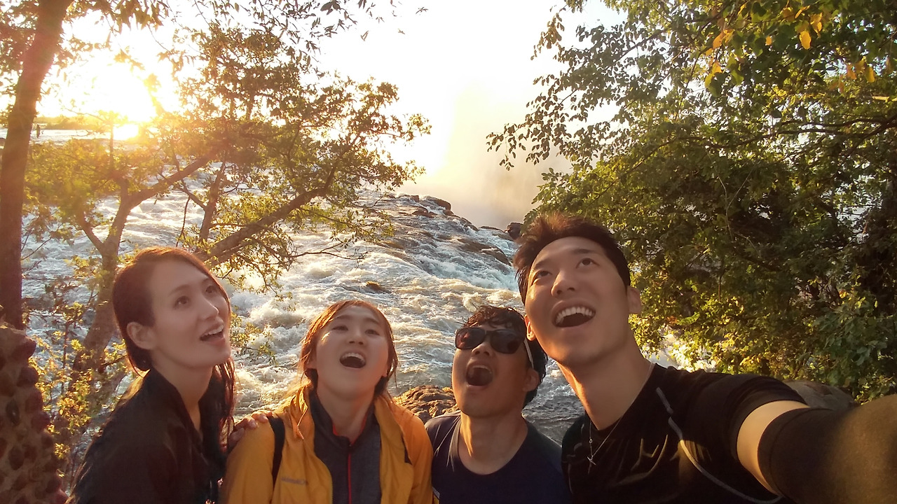 해가 누울 자리를 고르고 있었다. 하국 오빠와 지석이는 이제 숙소로 돌아가서 쉬자고 했다. 택시 기사와 만나기로 했던 시간도 다 와갔다. 일정 상 우리는 피곤한 게 맞았다. 좋은 긴장감으로 계속 각성돼 있었을 뿐이다. 그런데 가기 싫었다. 너무 아쉬웠다. 여기서 가면 이제 빅토리아 폭포의 '노을 지는' 모습은 다시 볼 수 없을 것이다. 출국일이 바로 다음 날이었기 때문이다. '이제 가야 할 시간이라니……' 이렇게 생각하고 있는 찰나, 예지가 "우리 왜 가야 해. 진짜 한 번만 더 보고 가자. 한 번만!"이라고 하며 이미 빨개진 폭포 쪽을 향하고 있었다.