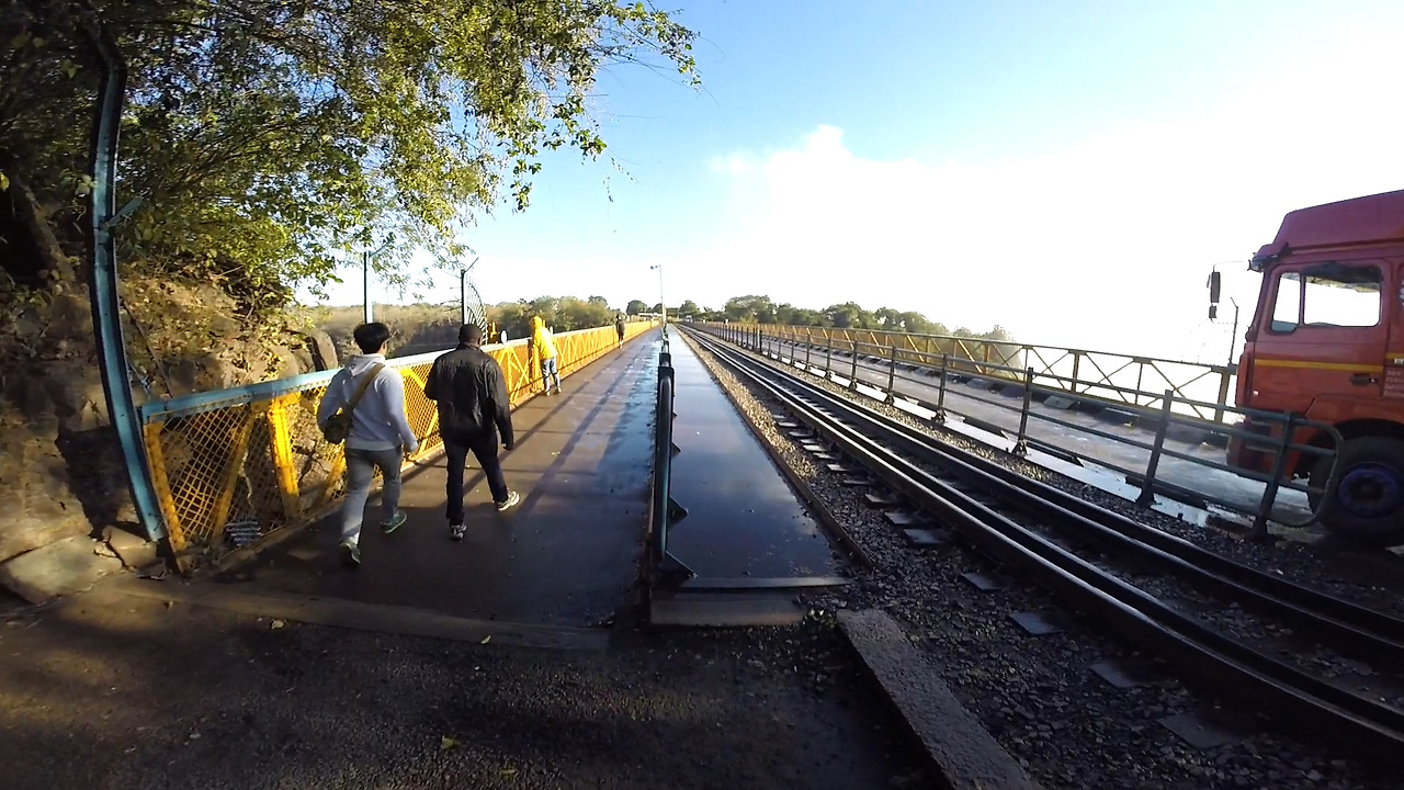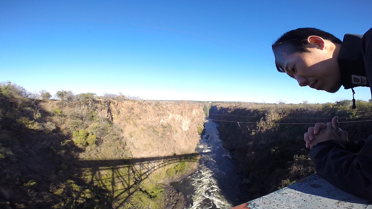 우리는 결국 이곳에서 번지점프를 하지 않겠다고 하고 다시 지프차에 탔다. 그러자 담당자는 다른 번지점프 사이트로 이끌었다. 그곳은 잠비아-짐바브웨 사이에 위치한 다리(브릿지)였다. 우리는 잠비아 단수비자만 받고 짐바브웨 비자를 받지 않아서 이 다리에 가볼 수 있을 거라 생각지 못했다. 그러나 번지점프를 이유로 담당자는 우리가 이 다리를 건너볼 수 있게 허용했다.