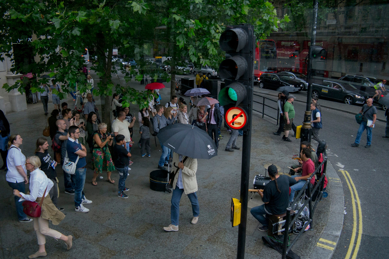 난 이때 지하철 안이 잊히지 않는다. 어떤 도도한 여자가 다리를 꼬고 있고 정장을 차려입은 남자가 지하철 복도를 지나갔다. 지하철이 좁아 여자 다리에 남자 다리가 걸렸고 남자가 발을 깽깽거리며 "Sorry~"라고 말했다. 여자가 매우 떨떠름한 표정으로 남자에 대응했다. 이를 구경하며 내가 마치 영국 드라마 한가운데 있는 것 같았다. 교복 입은 학생들이 역사 안에서 점프하며 하이파이브한 것도 기억난다. 지하철이 떠나며 흘리듯 그 장면을 보았는데 힙합 뮤직비디오의 한 씬 같았다.