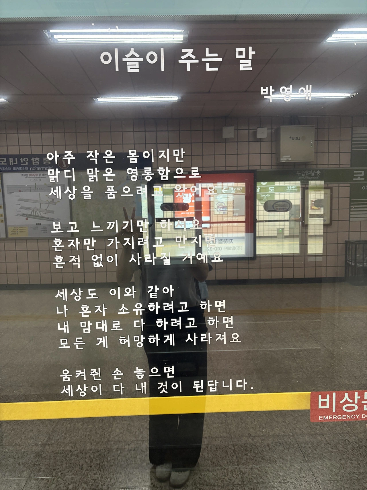 2. 삶은 정말 자동적으로 굴러가는 것 같아요. 걱정할 필요도, 붙잡을 필요도 없다는 것을 매번 나에게 알려주어서 나의 삶에게 많이 감사합니다.