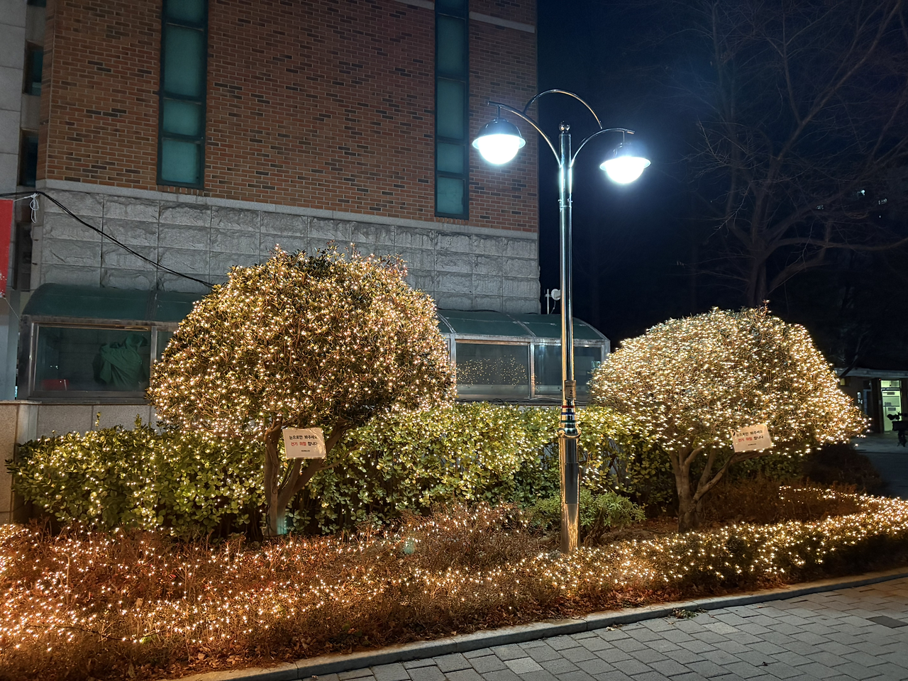 12월의 반짝이는 나무를 보며