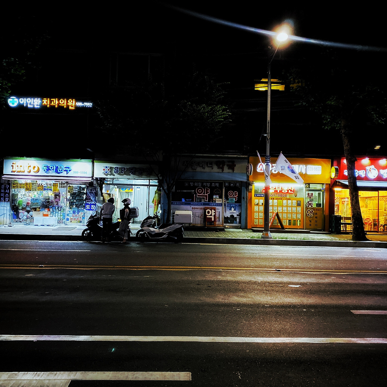 늦은 주말의 저녁. 아침열시부터 열두 시간가량의 길고도 길었던 수업이 끝났다. 그리 힘들지 않은 날이라 예상했건만 예상은 보기 좋게 빗나갔다. 열 시가 넘은 거리는 한산했고 버스정류장을 향해 걸어가는 이는 나뿐이었다. 그래서 였는지 텅 빈 거리의 간간히 보이는 자동차들이며 오토바이들에 유독 시선이 머물렀다. 행여나 음식이 식을라 재빠르게 쏘 아다니는 오토바이들이 있는 반면 아는 사람이라도 만난 것인지 길의 귀퉁이에 오토바이를 대고 여유로이 이야기하는 이들도 있었다.
