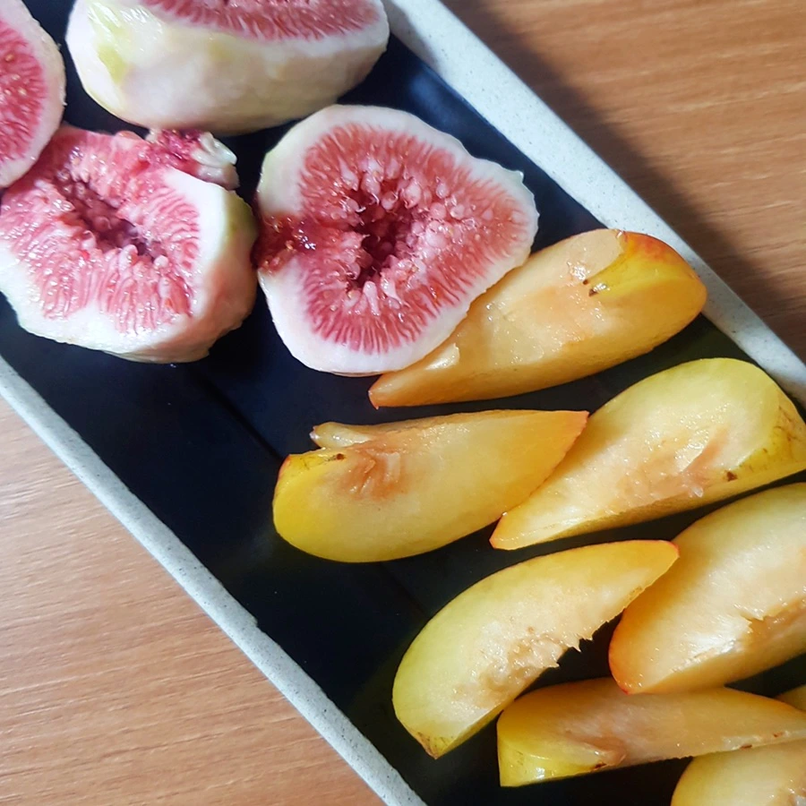 아참, 오늘 그녀가 일할 때 스트레스를 받는 것 같길래 그녀가 좋아하는 과일들을 준비 해 보았습니다. 감말랭이와무화과 그리고 자두