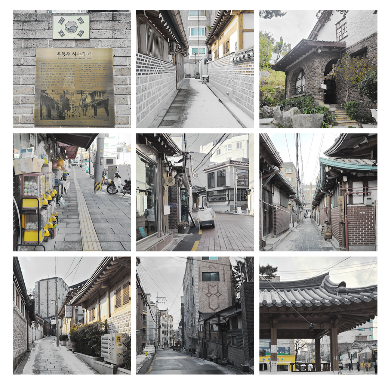 이처럼 서촌에 다양한 시간이 함께할 수 있는 것은 과거의 흔적이 남겨졌기 때문이 아닐까 싶다. 여러 지역에서 이전에 있던 건물들을 허물고 고층 건물을 짓는 것과 달리, 서촌에는 많은 건물의 흔적이 남아 있다. 전통시장이, 50년대에 지어진 단독주택이, 여러 인물이 기거하던 곳이, 한옥이, 많은 것들이 남겨져 있다. 물론 그대로 남겨진 것은 아니다. 전통 시장에는 지역 주민들보다 관광객이 더 많이 오고, 50년대 지어진 단독 주택은 편리한 형태로 개조되었으며, 한옥이었던 윤동주의 하숙집은 주택이 되었고, 한옥은 전통적인 형태에서 많이 벗어났다. 그러나 이러한 변화 속에서 중요한 것은 그들의 본질을 그대로 남겨두면서 변하고 있다는 것이다.