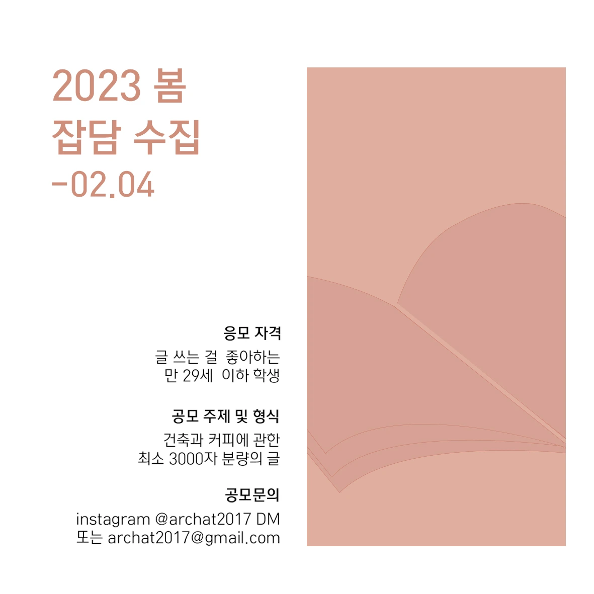 우수작 선정자에게는 글이 수록된 잡담 2023 봄호 ‘건축과 커피’ + 굿즈가 증정됩니다.