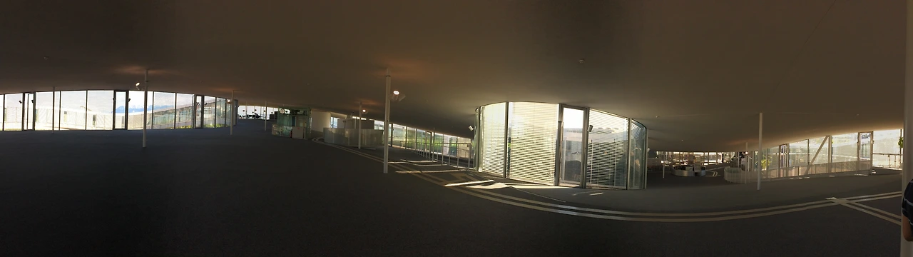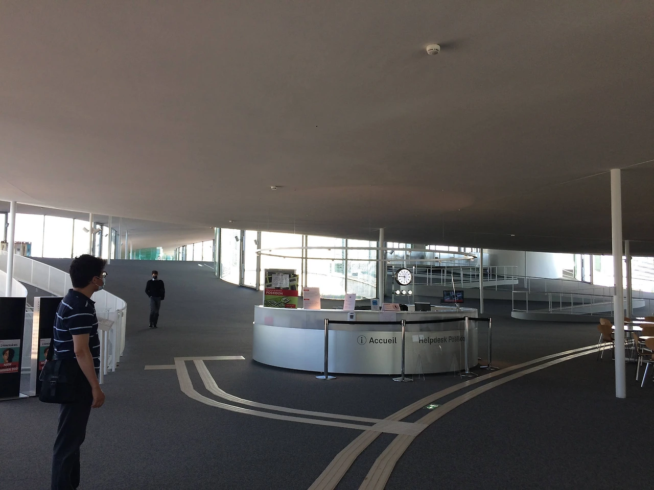 9미터 간격으로 15센티미터가량 두께의 기둥이 190여 개가 실내에 있다. 기둥이 광활(?)한 공간에 상대적으로 너무 작은 비율을 차지해서, 공간 안에서 전혀 부피감을 주지 않기 때문에, 공간과 사람들의 흐름을 막거나 방해하지 않는다.