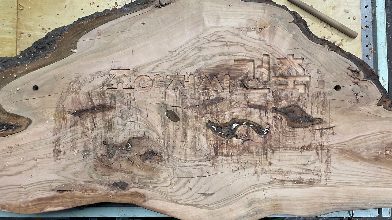 둘째는 서각을 한 번도 해 본 적이 없다. 나무를 워낙 좋아해서 가구도 만들고 나무로 하는 다양한 일을 해 봤지만 서각은 못 해 봤다. 간판과 서각, 이 두 가지를 한꺼번에 해결할 수 있는 방법이 서각으로 간판을 만드는 것이다.