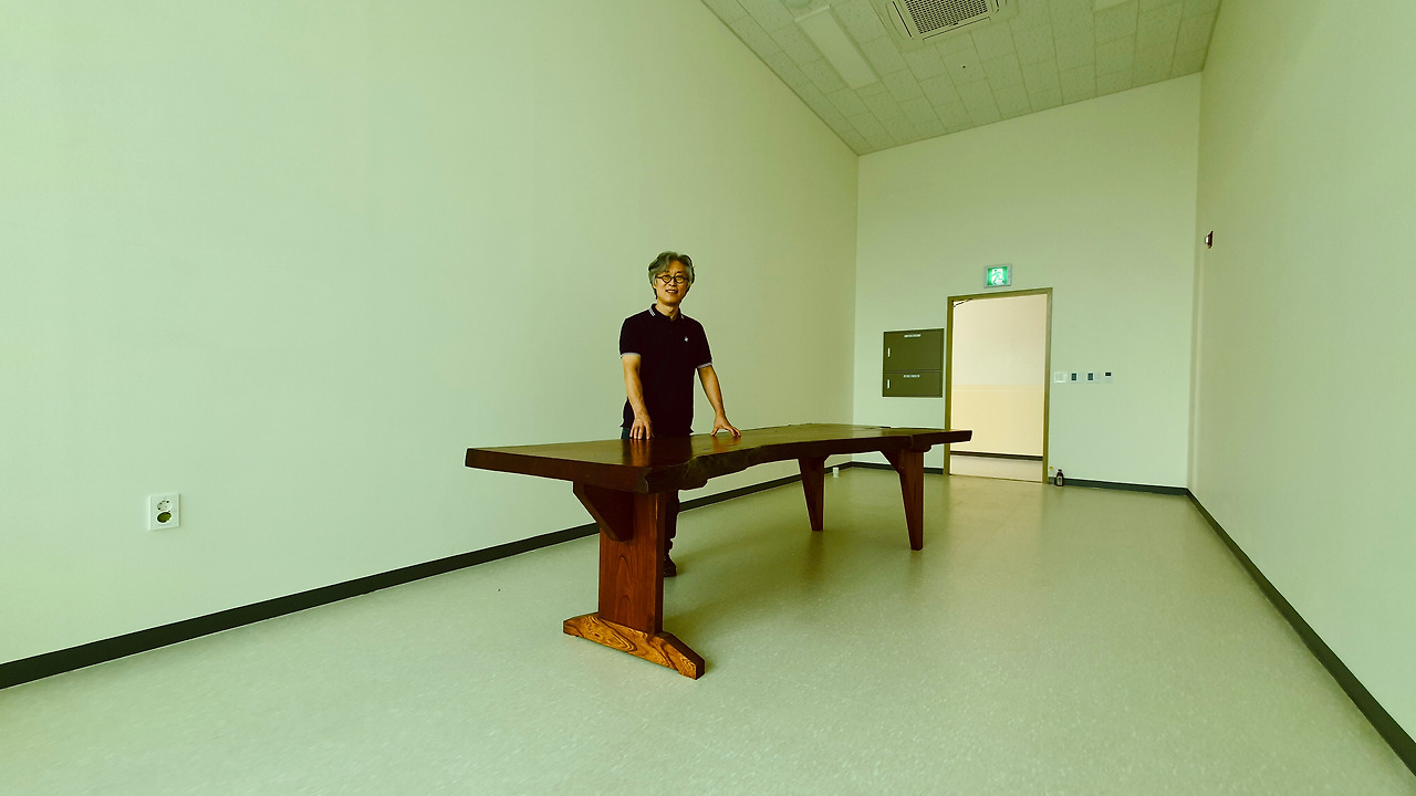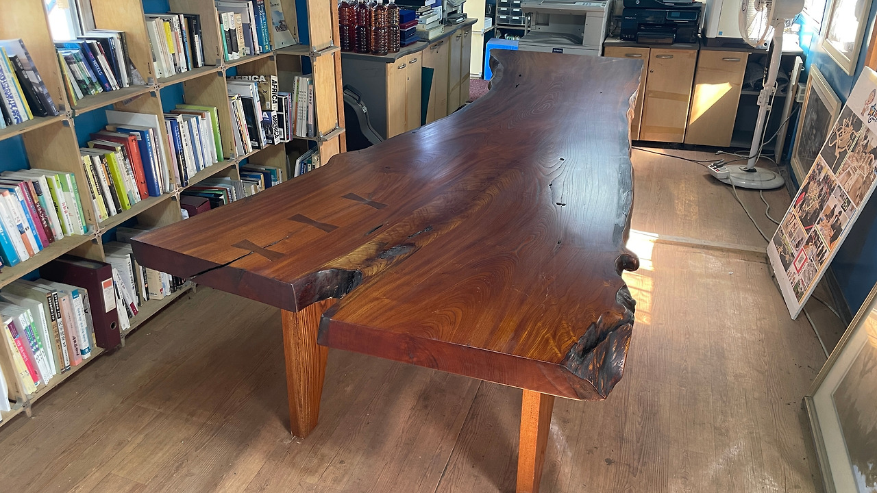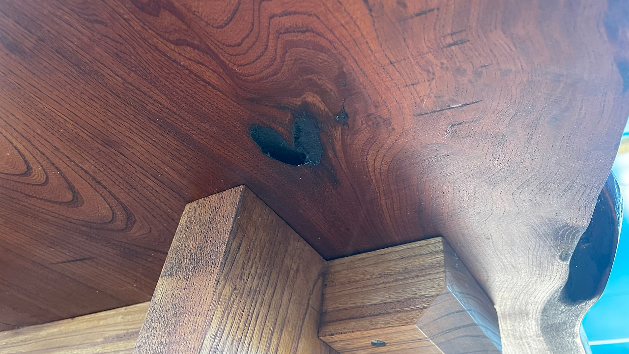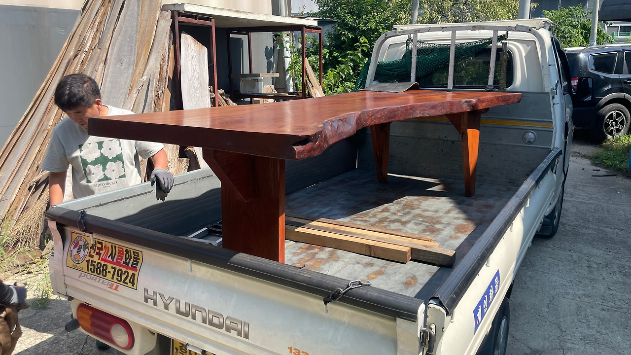 이 테이블의 다리 옆 상판 하부에는 은밀한 부분에 있는 타투처럼 자연의 솜씨로 새겨진 하트 문양이 있다. 이 하트는 처음 만들 때부터 이 목재가 나를 향한 사랑의 마음을 보여주는 것 같아 더 애착을 갖고 만들게 했었다. 옻칠을 처음 했던지라 주의부족으로 온몸에 옻독이 올라 말 그대로 한 달 동안 정말 개고생을 했었는데 그런 만큼 이 테이블에 대한 애착도 컸었다. 우드슬랩 테이블이야 다시 만들면 되지만 이런 특별한 나무와의 만남은 다시없을 것 같아 만감이 교차한다. 아마 작가들이 자신의 작품을 떠나보낼 때와 비슷한 느낌일 것 같다.