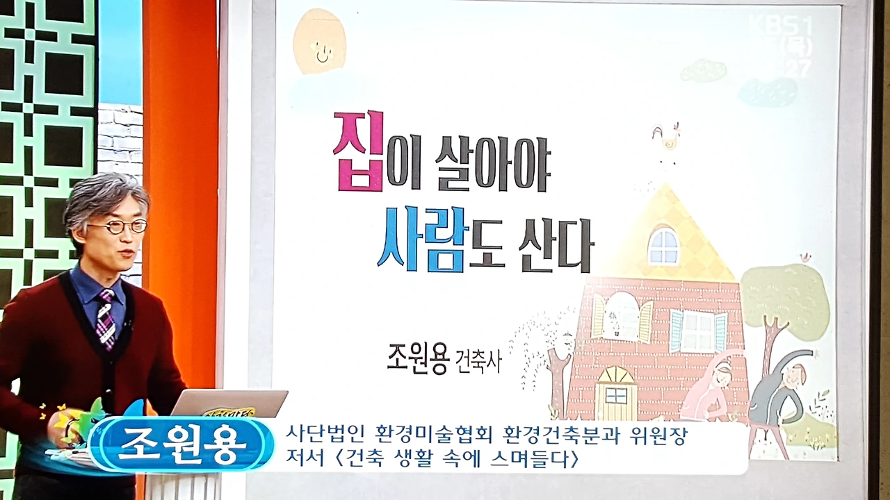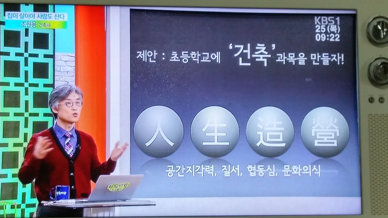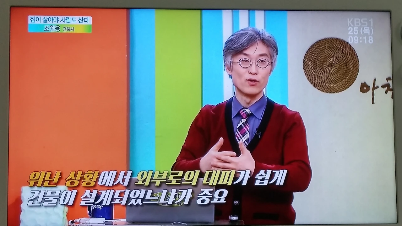 우리나라의 대표적 국민 프로그램이라고 할 수 있는 KBS 아침마당(이금희, 윤인구) 목요특강(2016년 2월 25일 방송분)에 출연했습니다. 그간 KBS2 방송의 TV특강, EBS 특강을 비롯해 제가 진행하는 인터넷 방송인 <건축 톡톡>(https://www.youtube.com/channel/UCCqx9DmMtyMhP0K-uoV9fng) 등 다양한 매체에서 간간이 방송을 탔었는데 오늘 아침 방송된 아침마당 목요특강은 오랫동안 매우 특별한 기억으로 남을 듯합니다.