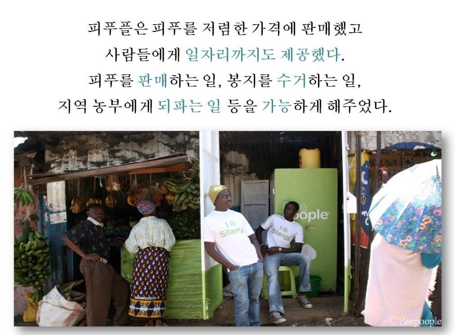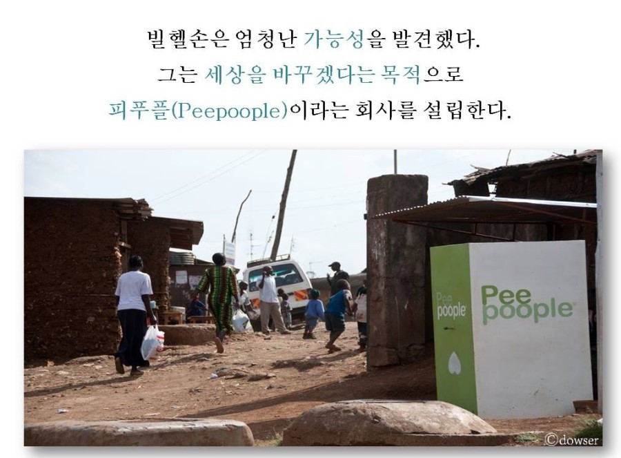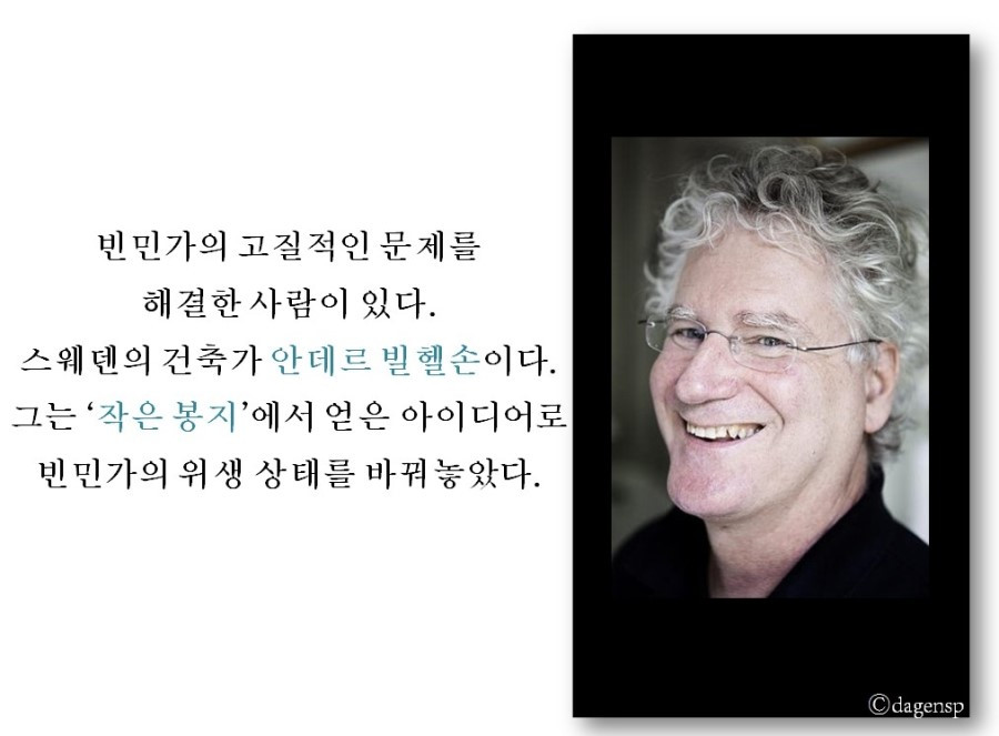 화장실이 턱없이 부족한 지역에서 용변을 위한 작은 봉지 하나가 어려운 환경에 있는 이들에게 큰 변화를 가져올 수 있었던 것은 그들의 삶에 관심을 가져준 사람이 있었기 때문이다. 그의 직업이 '건축가'였다는 것은 어쩌면 당연하고 의미 있는 발견이다. 왜냐하면 건축이라는 것이 '사람의 삶을 담는 그릇'이기 때문에 건축가는 사람의 삶에 깊은 관심을 가지는 것 자체가 그의 품성에 바탕이 되어야 하기 때문이다.