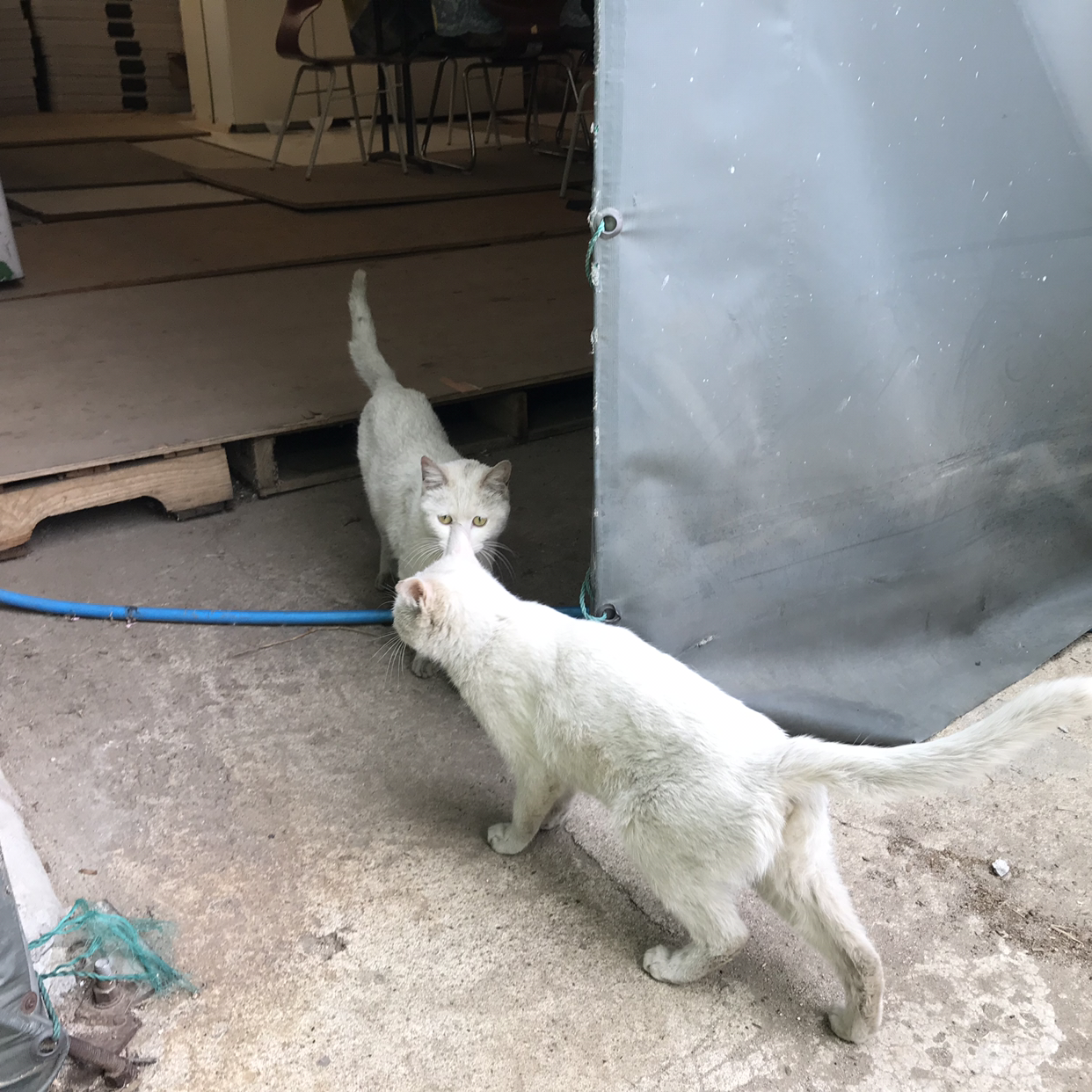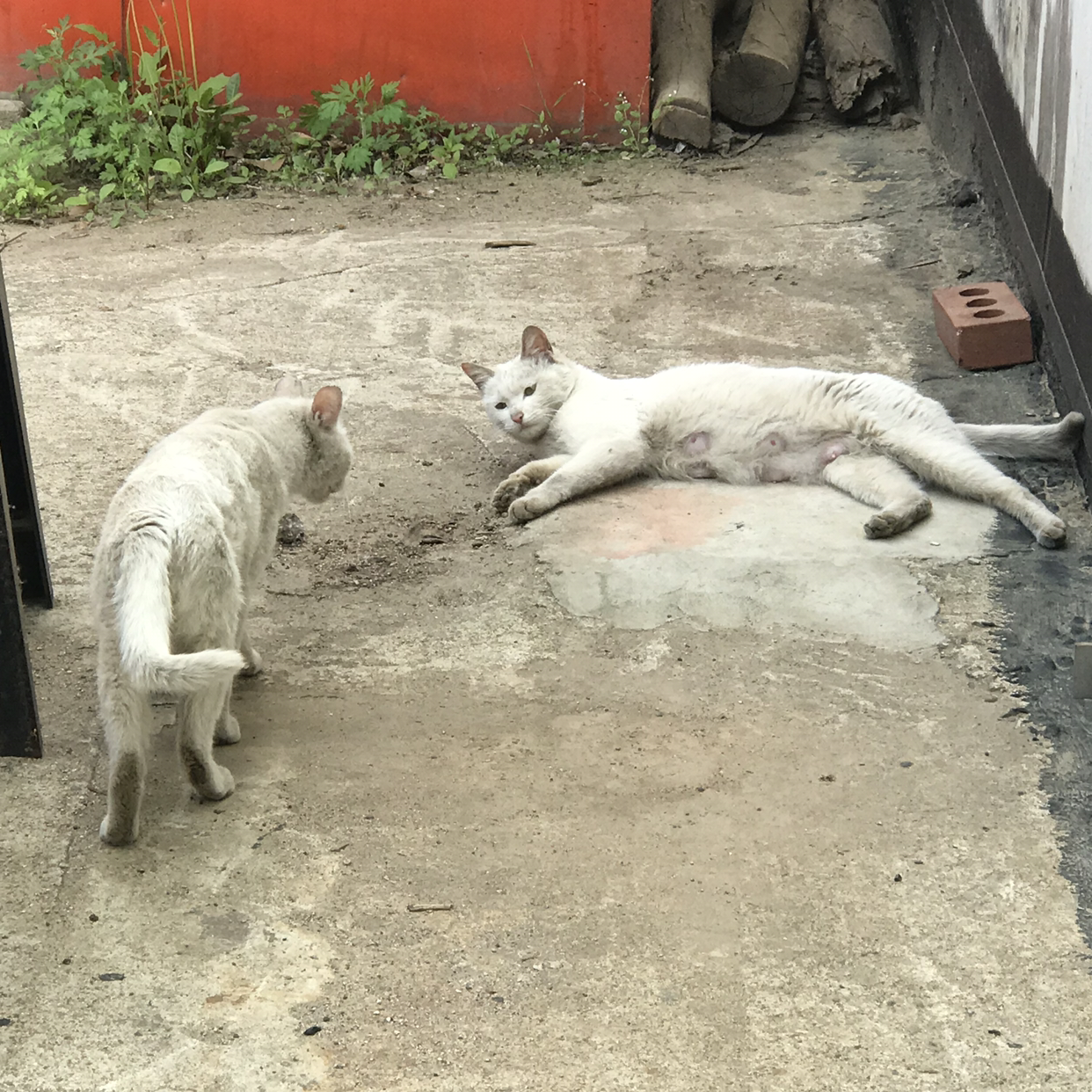 한동안 밥 걱정 안 해도 되겠구나. 저 두 녀석이 주 고객이고 가끔 다른 고양이도 오는 것 같다. 오드아이 미미는 내 손을 타지만, 또 한 녀석 나나는 전혀 타지 않는다. 그래서 미미 사진은 가까이서 찍을 수 있지만, 나나는 좀 떨어져서 줌으로 찍어야 한다. 둘은 자매인데 출산 전까지는 함께 내 공장 창고에서 오래 지냈다.