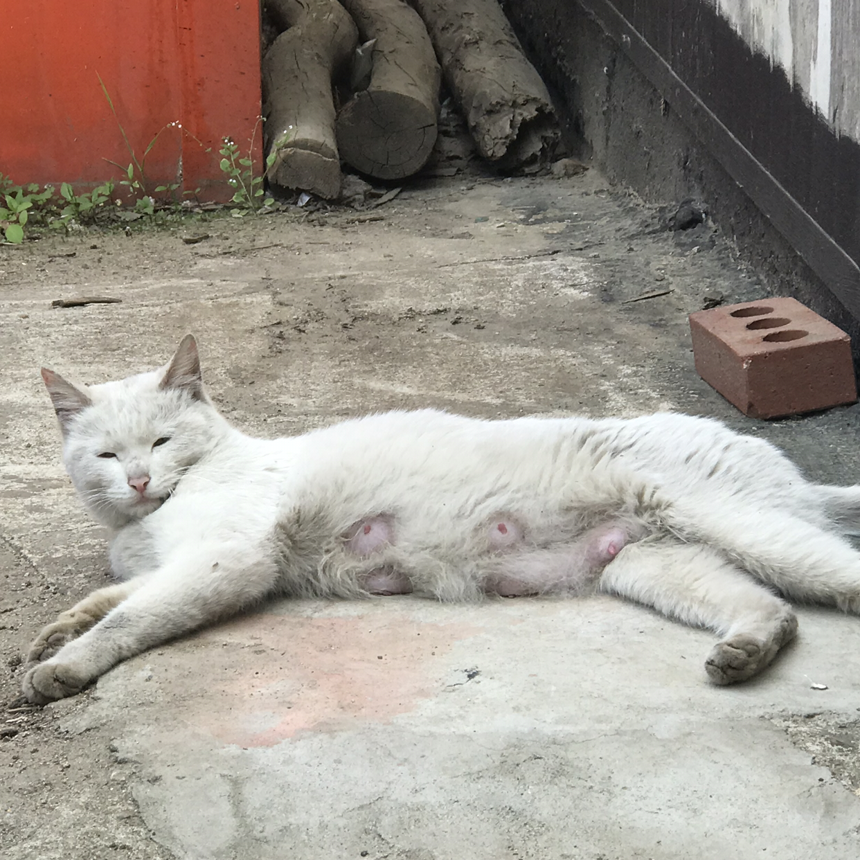 그러다 어느 날 미미가 새끼를 낳았고, 얼마 후 나나가 집을 나갔다. 드러누워 있는 나나를 보니 어디선가 새끼를 낳아 기르고 있는 것 같다. 나나는 새끼들을 어디서 케어하는지 모른다. 아무튼 젖을 먹이려면 자기가 먼저 잘 먹어야 할 테니 매일 와서 먹는다.
