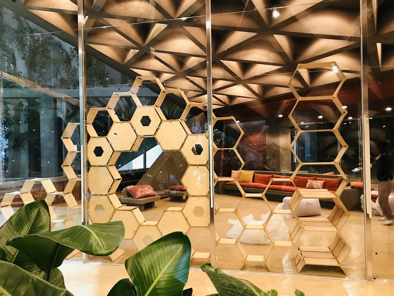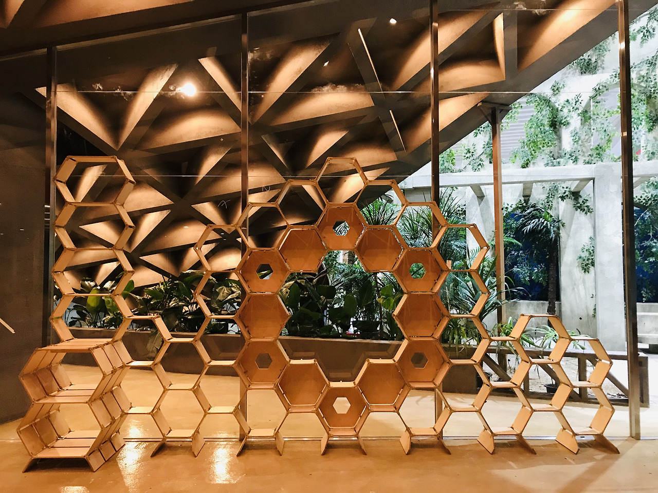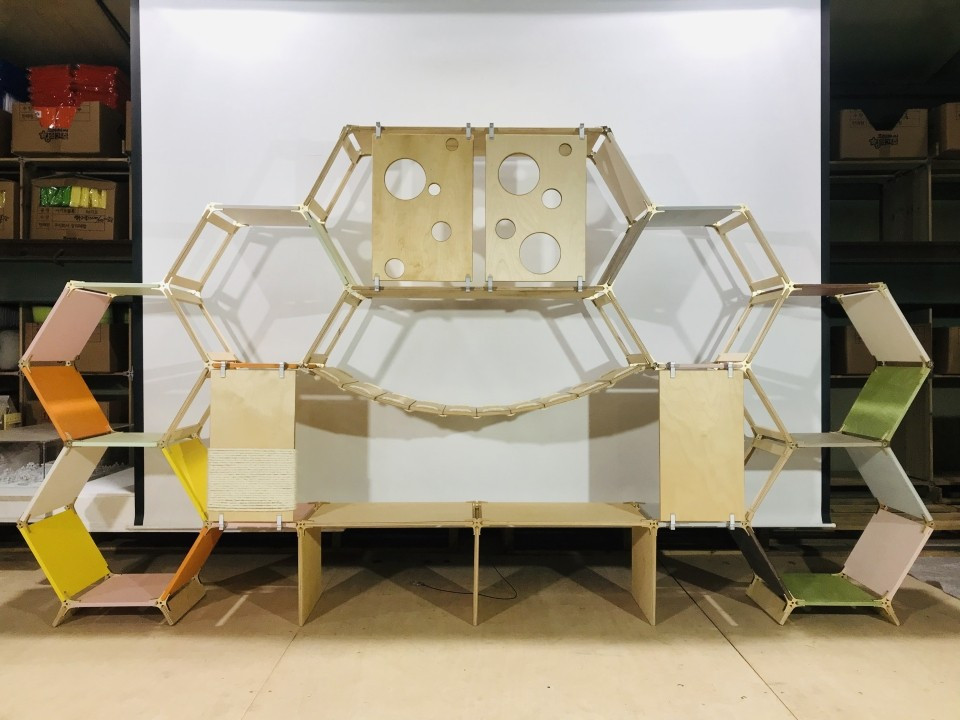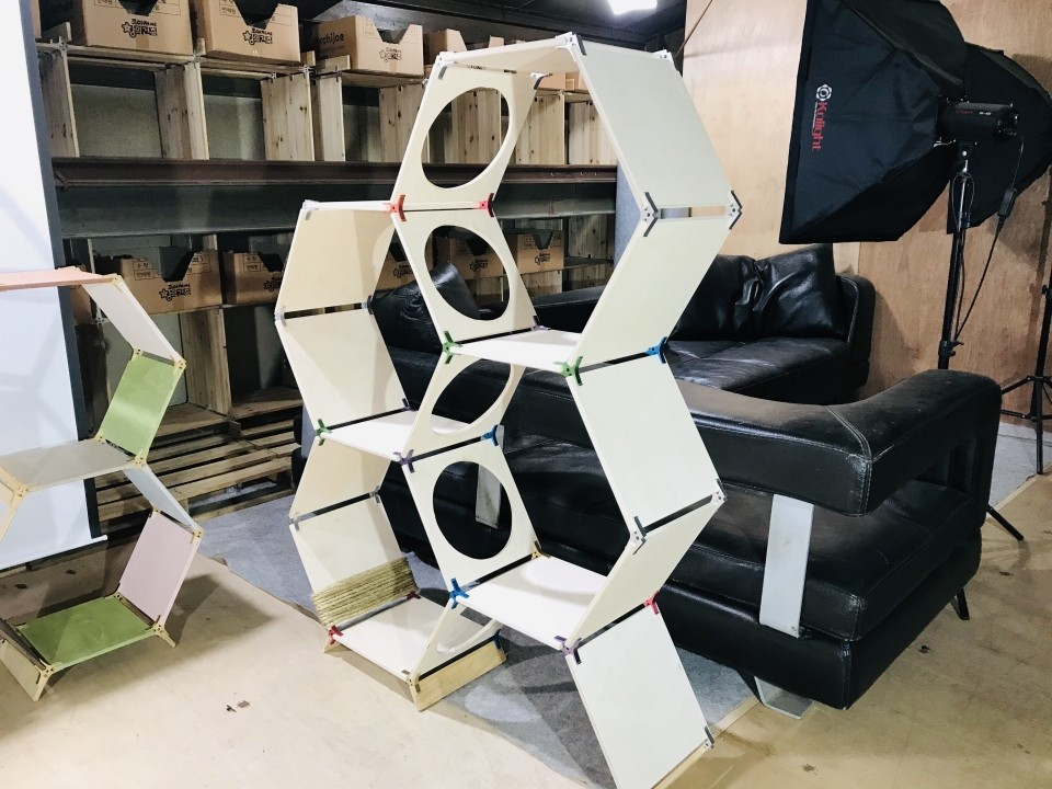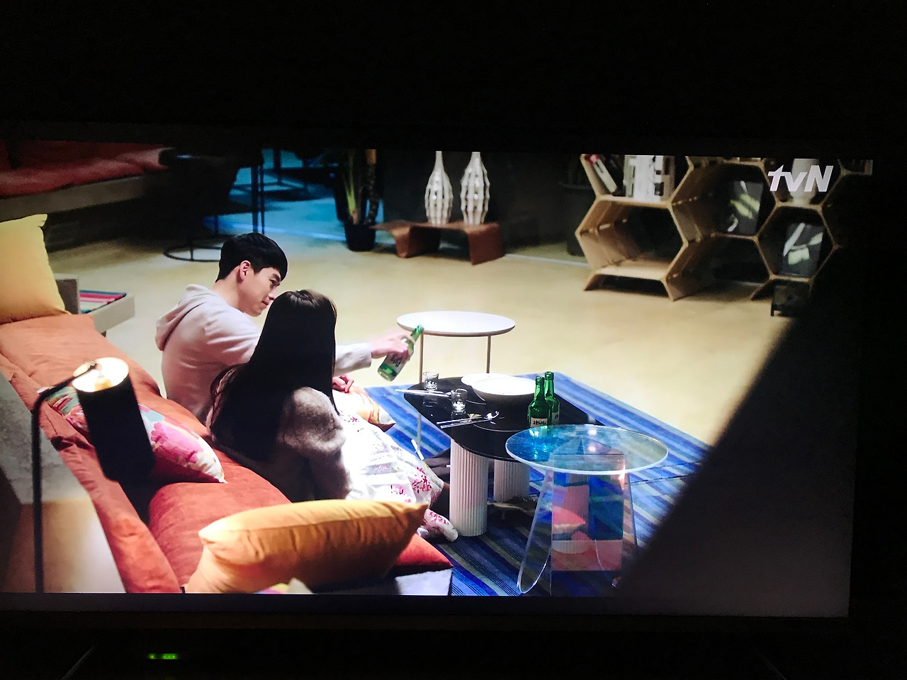 요즘 인기 절정인 tvN 드라마 '사랑의 불시착'에 제가 만든 가구를 협찬해서 그것 찾아보는 재미가 쏠쏠합니다. 주인공 윤세리(손예진 분) 집 거실에 있는 육각형 가구인데요. 완전 조립식 DIY 가구입니다. 아래 사진은 세트장에 막 설치를 끝낸 직후입니다.