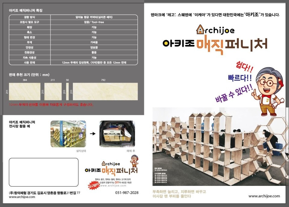 아키조 조원용입니다. 건축사가 개발한, 공구를 사용하지 않고 맨손으로 조립하며 가구를 만들 수 있는 '아키조 매직퍼니처'를 소개드립니다. 12mm 두께의 판재에 커넥터만 끼우면 가구가 되는 마술 같은 신개념 DIY 가구인 '아키조 매직퍼니처'입니다. 공구나 나사못을 사용하지 않고 맨손으로 쉽게 조립할 수 있습니다. 커넥터를 사용해 어떻게 응용할 수 있는지 아래 포스팅을 참고해 주시기 바랍니다~^^