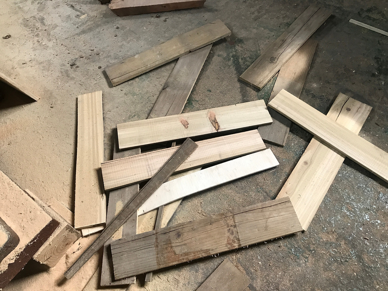 수 일전 버려진 테이블 상판을 주웠다. 재료는 월넛이었지만 흠집이 많이 나 버린듯했다. 어딘가 쓸모 있겠다 싶어 싣고 왔다. 한편 구조용 목재로 쓰다 효용을 다하고 버려진 목재 조각도 주워온 게 있었는데, 그것들을 이용해 벤치를 만들어야겠다고 생각했다.