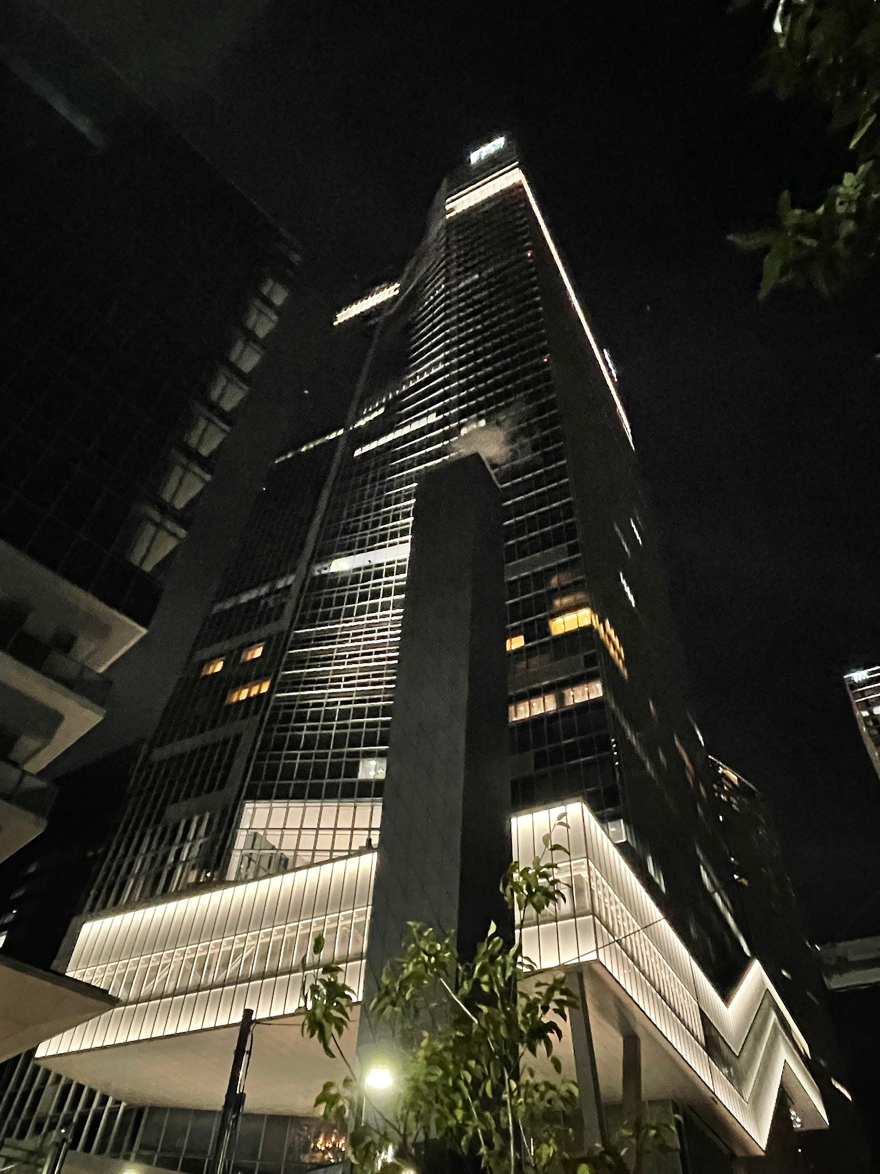우선 저층에는 리테일/상업 프로그램이 구성, 위부터는 호텔/오피스가 있기 때문에 이들을 나눠주는 스카이로비를 중간에 만들면서 바깥으로 돌출시켜 자연스레 드러냈습니다.