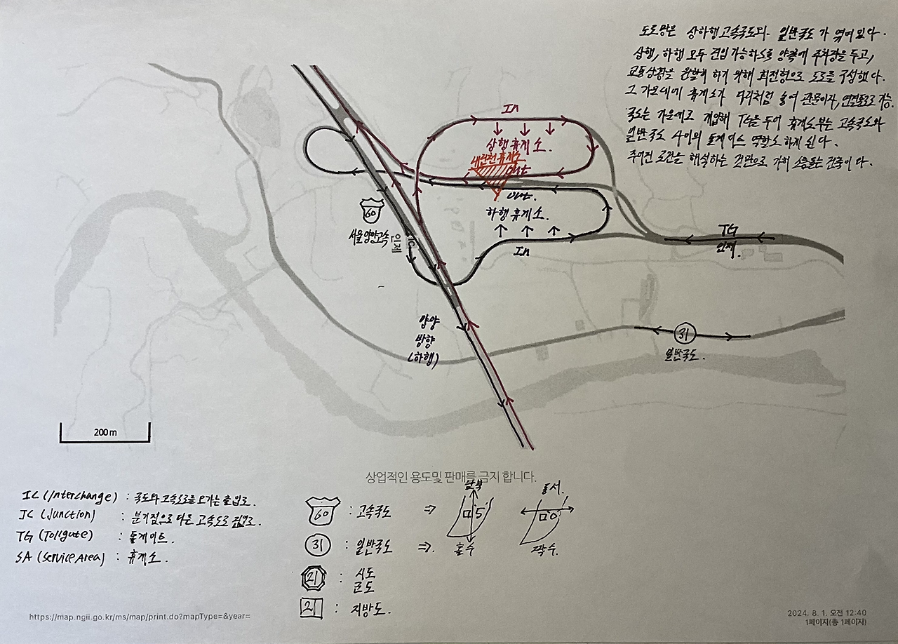 보통의 고속도로휴게소는 이 중 한쪽 방향으로만 진입하게 되는걸 상상하실 수 있을 겁니다.