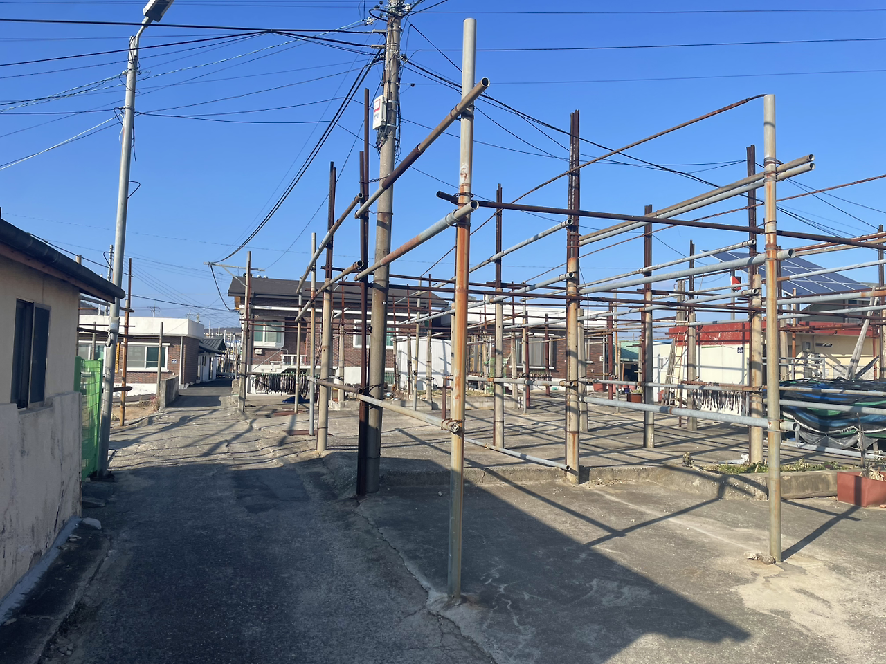 직주근접의 현장이랄까요. 덕장은 주택에 마치 가설구조물 같은 건조대가 붙어 있는 모습으로 이루어져 있었습니다.