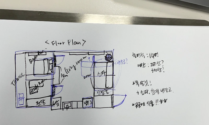 상황이 이렇다 보니, 인테리어에 관심은 있지만 방법을 모르는 일반인들(특히 파워 J들)은 대차게 그린 네모들로는 성에 찰리 만무하다. 그래서 필연적으로 나의 취향을 인테리어 업체에게 구두로 설득시키는 긴 여정을 거치게 된다. 하지만, 그 과정에서도 '내'가 원하는 인테리어를 '직접' 할 수 없다는 부분에서 가려운 부분은 생기기 마련이다.