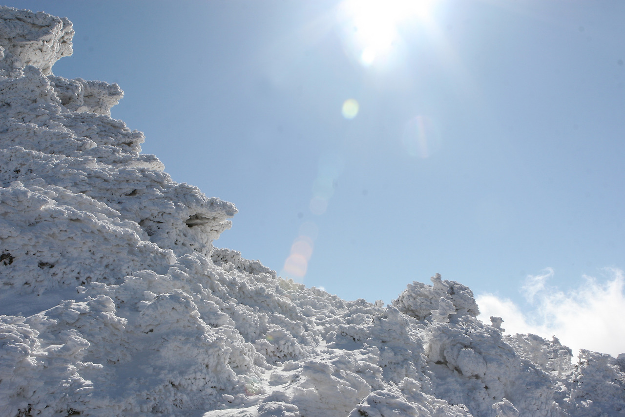 정상이 가리워져 볼 수 없을때도 있었고, 아이젠을 착용하고 오르기도 하고.