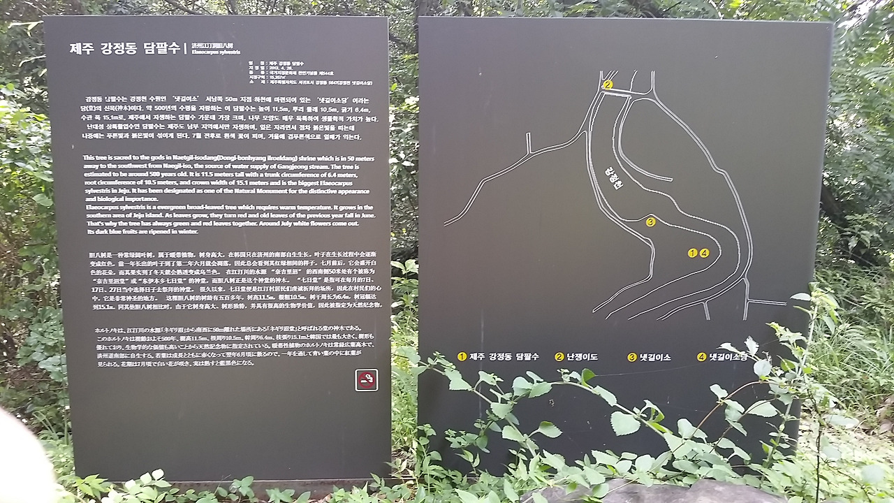 냇길이소를 올라와서 안쪽으로 조금만 내려가면 강정마을 담팔수도 만날 수 있다.
